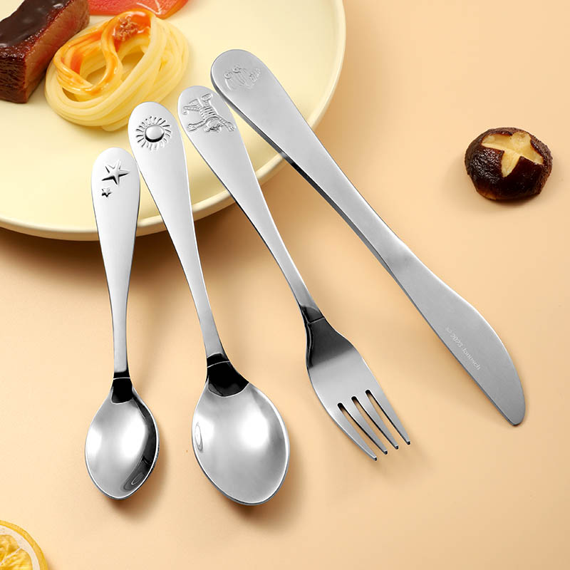 Safe and durable children’s flatware made from food-grade stainless steel with rounded edges. Lightweight and colorful designs, perfect for toddlers and kids. Wholesale and OEM options available.