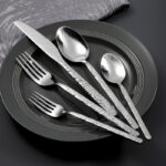 H03 Irregular Stone Texture Stainless Steel Metal Silverware Set