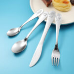 Made with a 304 stainless steel knife and 420 stainless steel spoon and fork, this kids’ flatware set offers both safety and durability. The handles are printed with different cartoon characters such as a gladiator, a king, and a sword, giving each utensil a unique and playful look. Ideal for wholesalers, retailers, and brands looking for OEM/ODM customization.