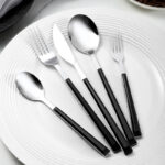 W001-B Black ABS Plastic Handle Stainless Steel Korean Style Flatware Set