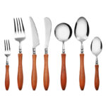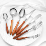 W032 Natural Toona Wood Handles High Quality Flatware Set